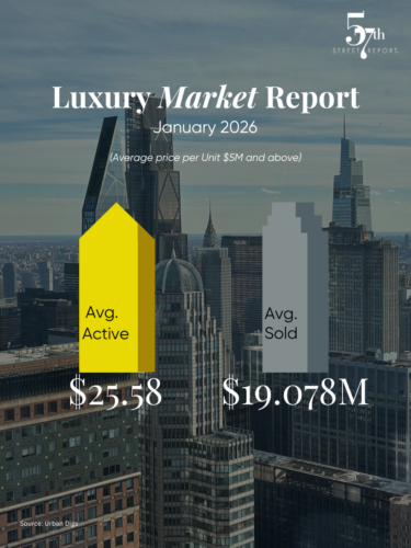 Luxury properties on 57th Street command an average price per square foot (PPSF), at $5,340 with a median PPSF of $5,174 The average luxury property price is $25.58 million, while the median price stands at $17.95 million.
